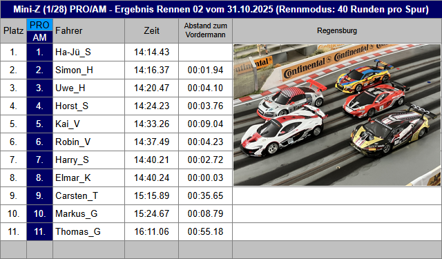 31.10.2025 - Zweiter Rennabend Mini-Z-GT PRO/AM (1/28) und gestellte Klasse (1/28) (Regensburg)