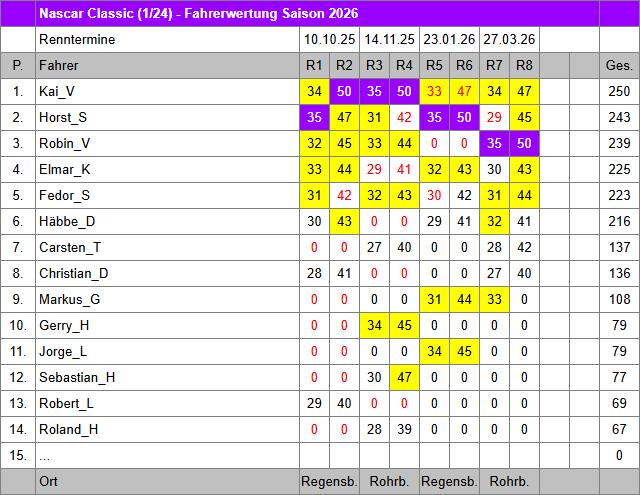 | Nascar Classic | Ergebnisse | Fahrerwertung | Reglement | ... |